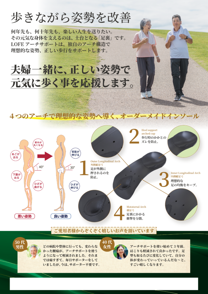 • 直立時や歩行時に足裏を支え、姿勢を正しく安定させます